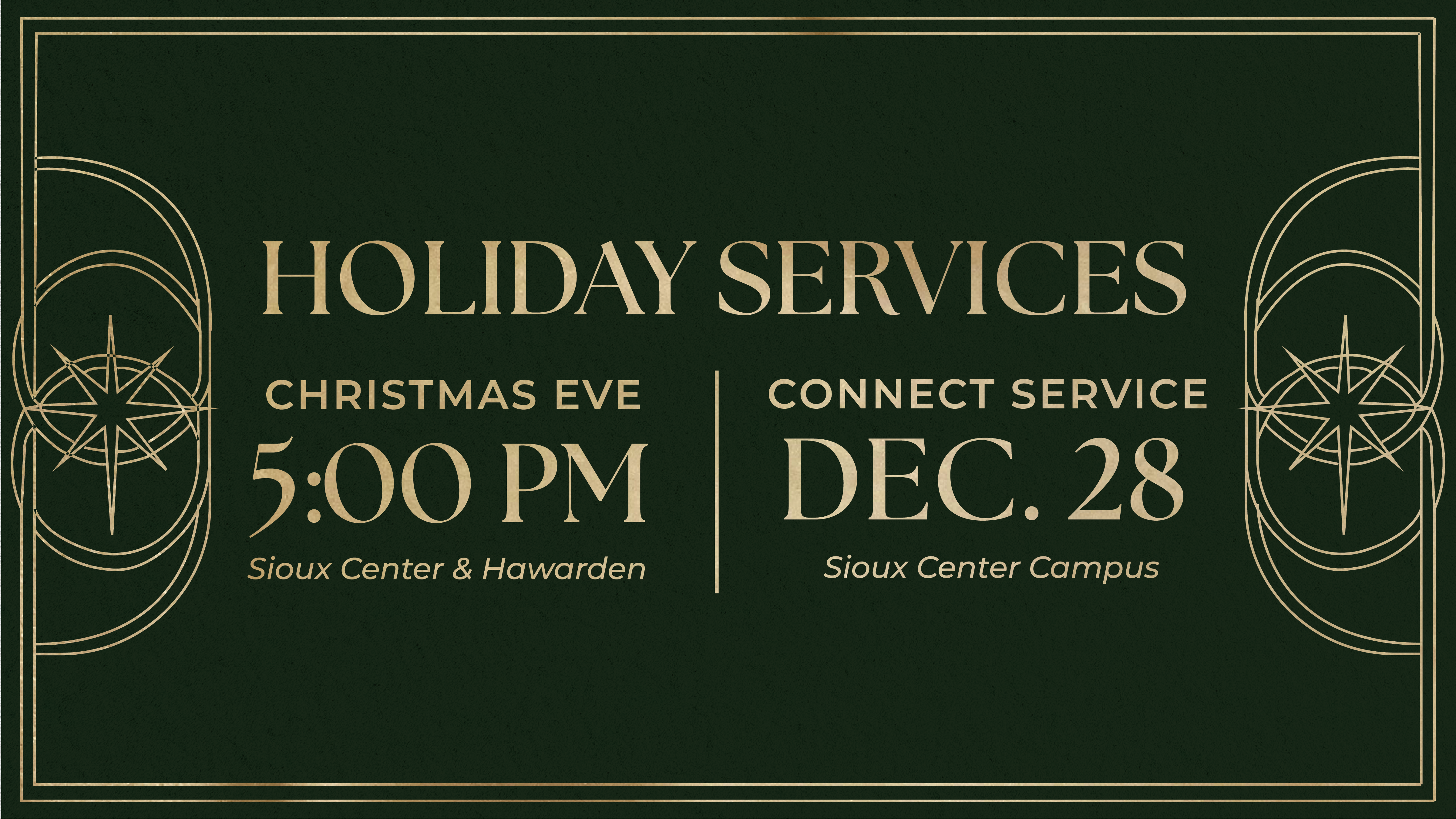 Our Sunday morning service on December 28 will be a connect service at our Sioux Center campus. We are excited to conclude our Advent series with the opportunity to worship together in one place!